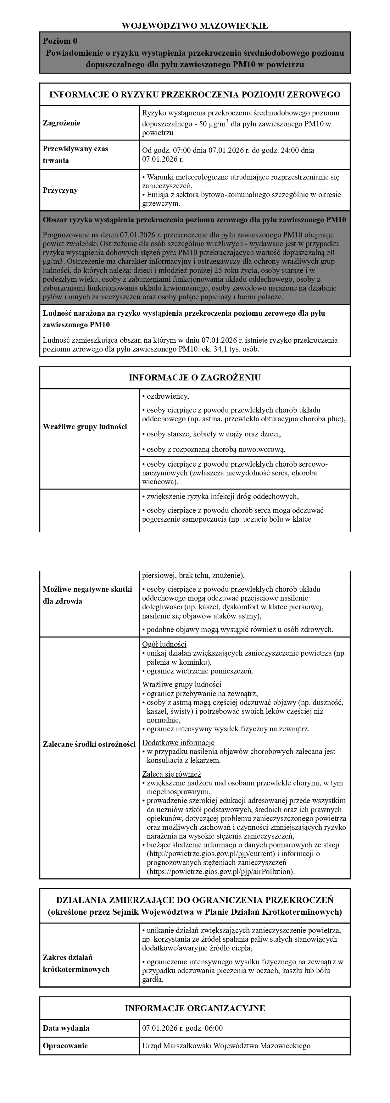 Komunikat GIOS odnośnie jakości powietrza